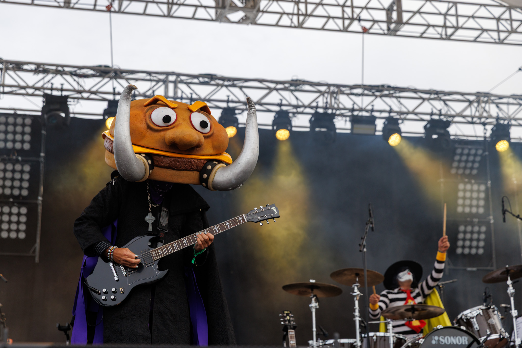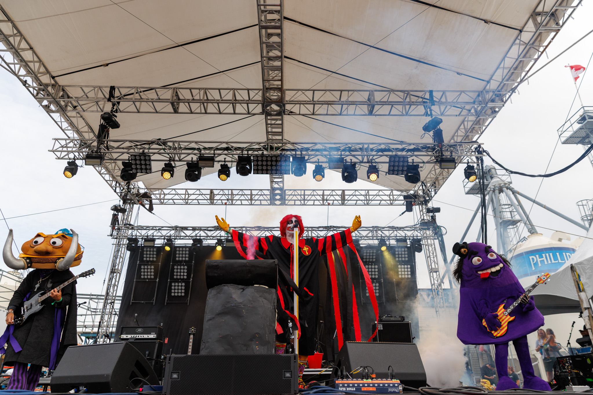 Okay, we know a few of you probably scrolled down to this paragraph immediately after this review released, and we totally get it. Mac Sabbath, a fast-food character inspired Black Sabbath cover band, holds a very special place in our hearts. I mean, I wear a grimace outfit to festivals, so I bet you could tell I was like a kid getting a happy meal. From the costumes to the on-stage props, to the clever lyric changes, Mac Sabbath is what cover bands wish they could be. You aren’t just getting a generic cover of a Black Sabbath song; you get Ronald Osbourne cooking a rubber bat on a grill and placing it between two buns before he takes a bite, all while playing Frying Pan, their cover version of Black Sabbath’s Iron Man. It’s an incredible sight to behold. To close their set, Ronald addressed the elephant in the room; the passing of Ozzy Osbourne. Mac Sabbath paid tribute to prince of darkness by ending their set with a cover of Paranoid, but not the Mac Sabbath version, Pair-of-buns. Once the song finished, it was tough to say goodbye but as one final laugh, they walked off to Wesley Willis’ iconic track, Rock ‘n Roll McDonalds. This experience will forever be remembered by us.