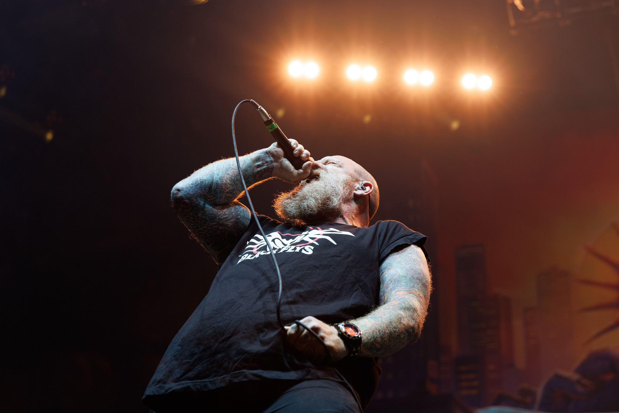 Kicking off the night was a swift 6 song set by Exodus. Since 1979, this California based Thrash Metal band has been ripping cords and taking names. Today, they are still crushing it and showing just how hard they throwdown. Rob Dukes, lead singer of Exodus, wasted no time with the crowd. Not even 10 seconds into the performance, he called for a circle pit to form, and the crowd humbly obeyed. Rob’s not only good at commanding crowds, but he’s also good at helping out his fellow bandmate. During a guitar solo by Gary Holt, Rob walked over with a beer for him. Instead of stopping to drink this beer, Gary continued to play the required notes for the song and Rob helped strum his guitar. Their teamwork is a testament to how solid this band was. Before the end of the show, Exodus had the crowd form a Wall of Death. From one end of the pit to the other, the crowd rushed and slammed into each other as the pace hit an all-time high. Overall, Exodus showed that you don’t need a 15-song set to make a statement. You can have that same effect with only 6 songs, though we hope to see them return to Victoria for a longer set.