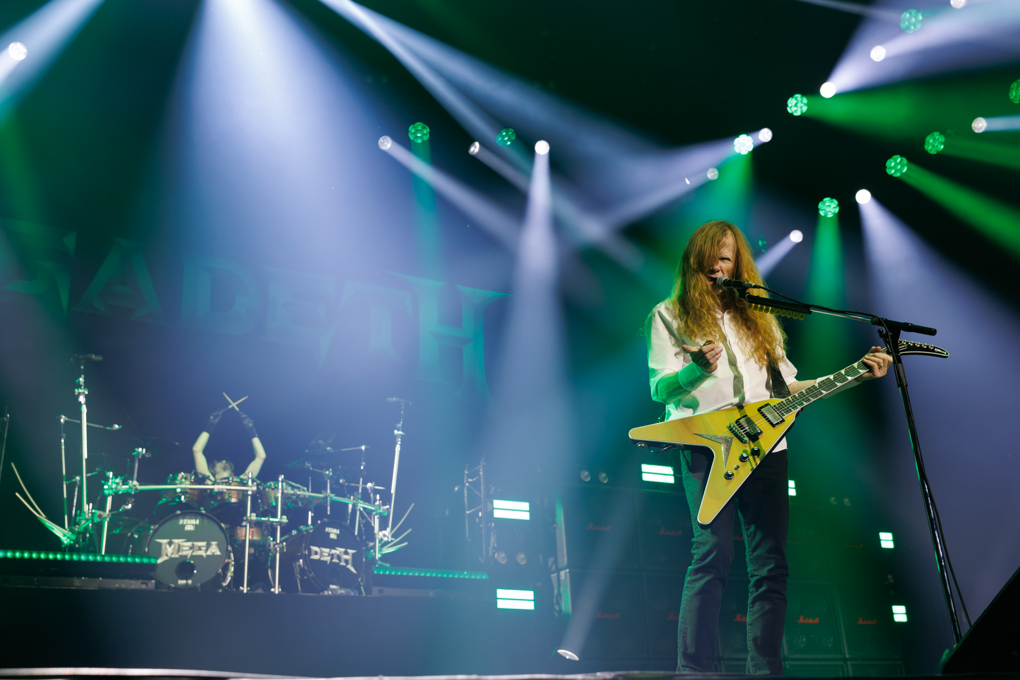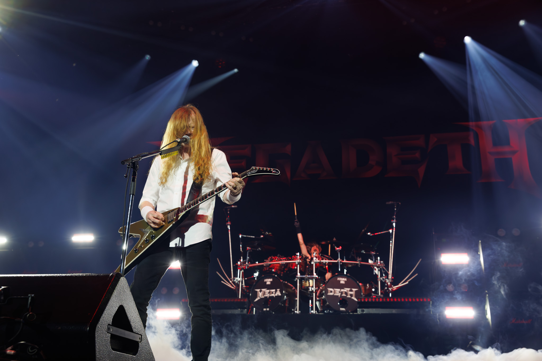 There’s a lot of history with a name like Megadeth, and Dave Mustaine is the true holder of that history. The impact Dave had on the fans in SOFMA, both young and old, was clearly on display. VIP ticket holders were escorted up on-stage to get a better view of the band during their final performance, and with a quick drop of the stage curtains, Megadeth’s final performance in Victoria began. Now oddly enough, I believe this was Dave’s first time in Victoria as well, so it will have been a first and last for the city. In any case, the band played a relentless 17-song set. If you were wondering if Mustaine still has it, then that setlist should be your answer. Granted, there were times when breaks were taken, but overall, the band played through a strong set of classics. Every time Dave got on the microphone, the crowd roared showing just how much Megadeth meant to them. Of course, the show had to come to an end, but not before the crowd cheered for one more song. Dave and the band would choose Holy Wars… The Punishment Due as their encore, giving fans one final chance to mosh and enjoy. Megadeth’s skull figure from their new album even made an appearance on stage with them. When the song finished, the band took a photo with the crowd, Dave then turned around, gave us a bow and walked away.